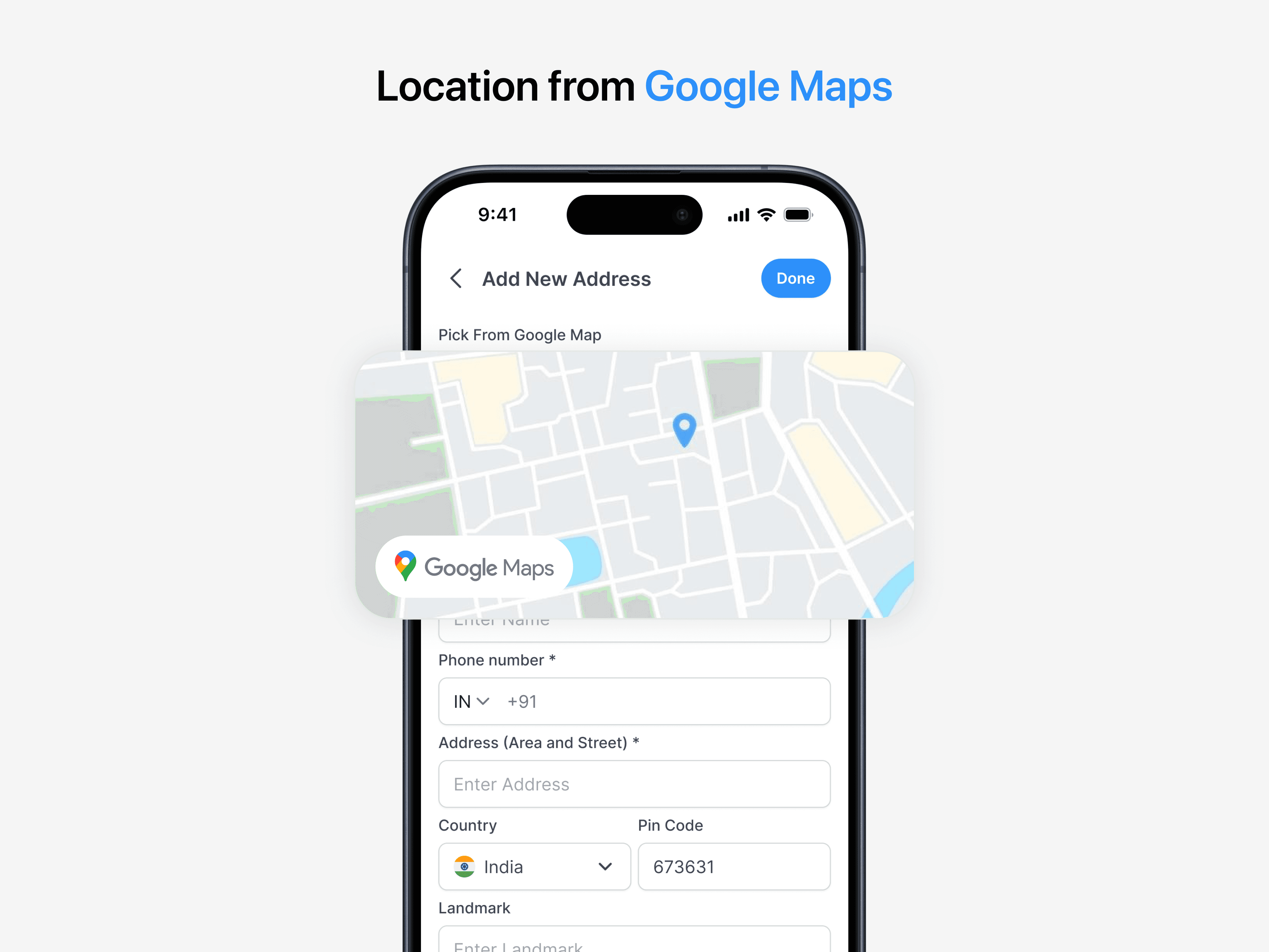 Users can pick the location directly from Google Maps, reducing errors and saving time.